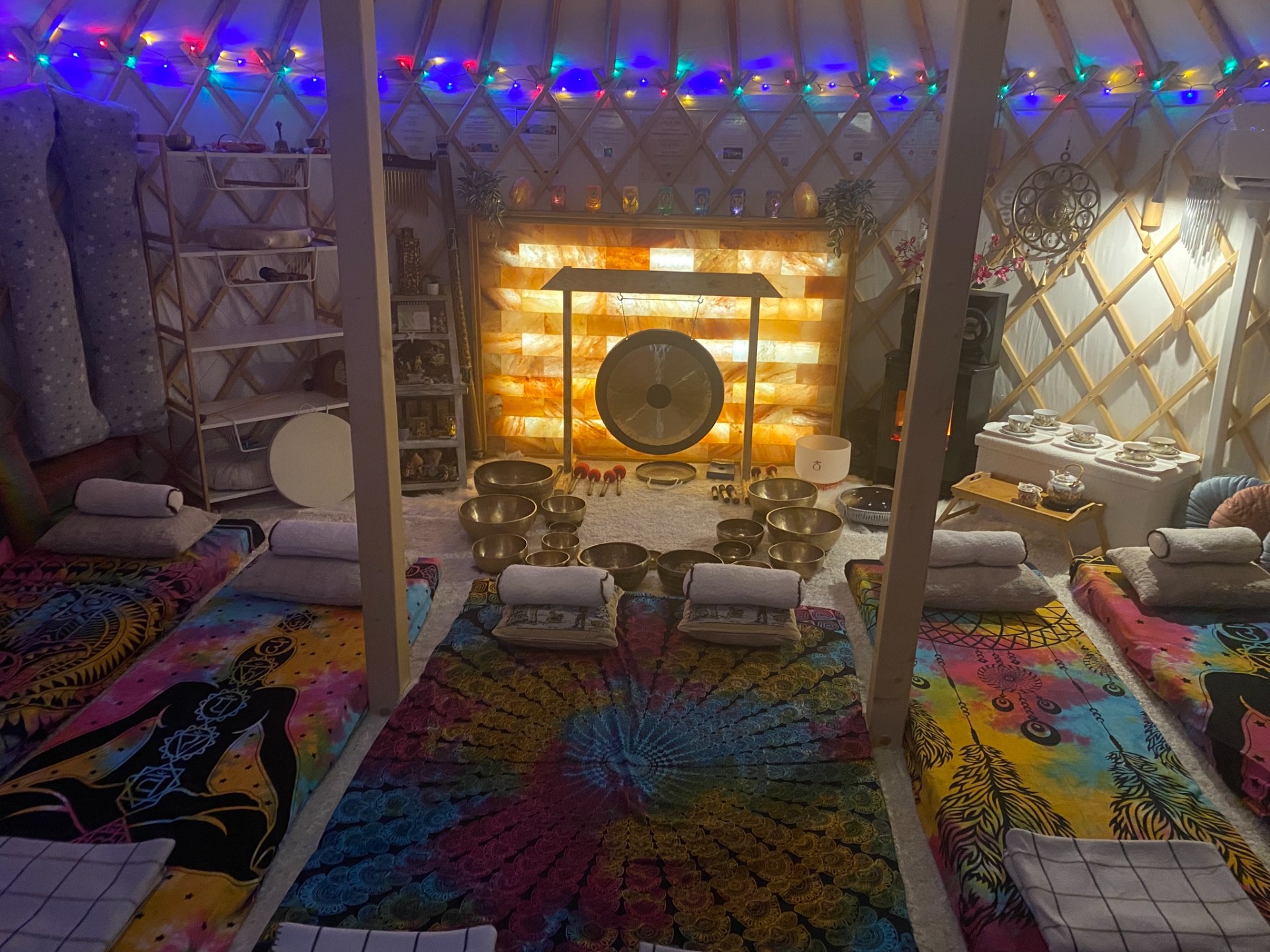 A nyugodt és teljes ellazuláshoz kényelmes, puha matracokkal, párnákkal, pokrócokkal, finom, meleg teával, lágy fényekkel és sok szeretettel várlak a Geszthy Rezgésösszhang Jurta ölelő terében!